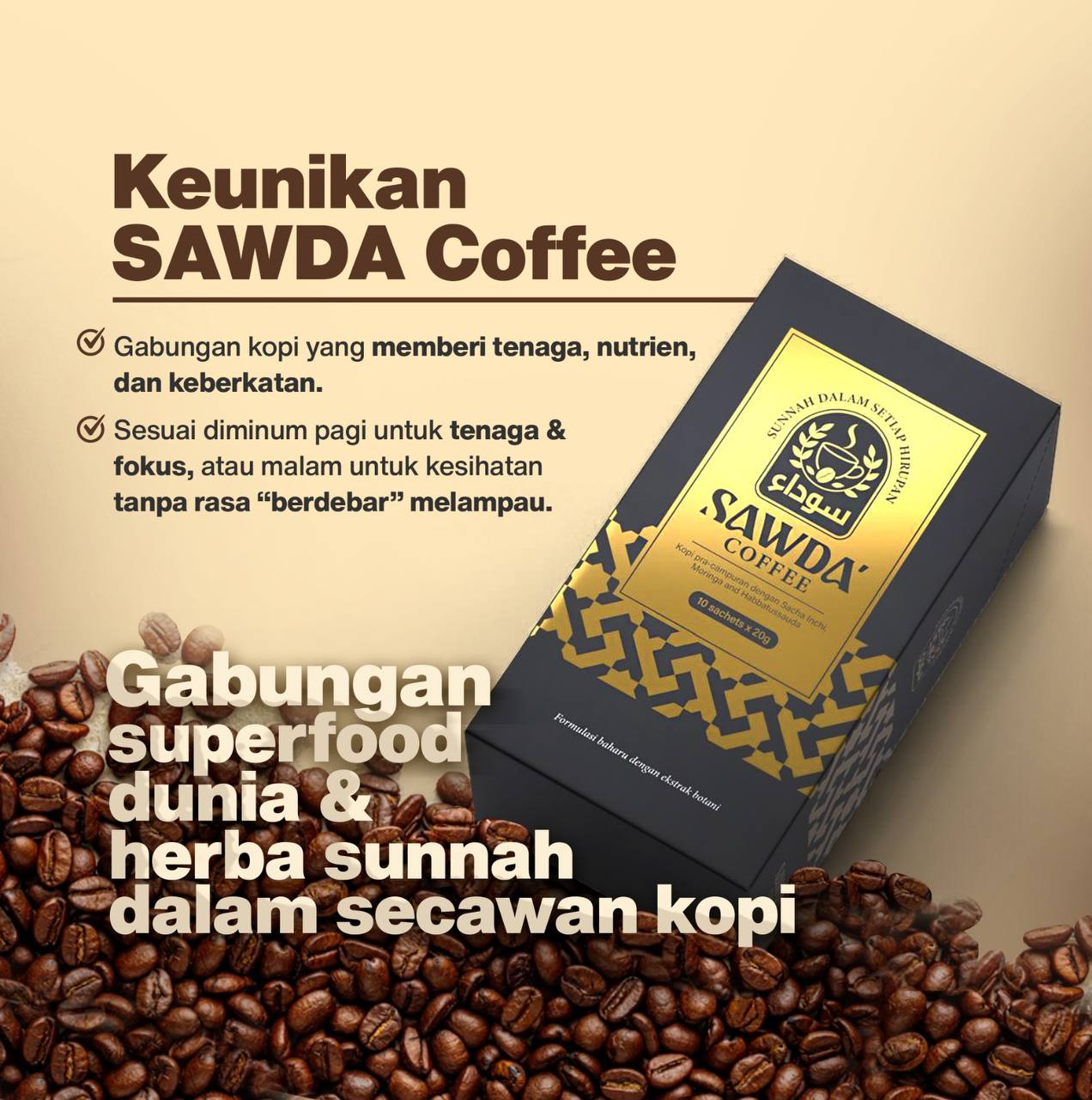 Sawda Coffee ini ialah gabungan kopi yang memberi tenaga, nutrien, dan keberkatan.